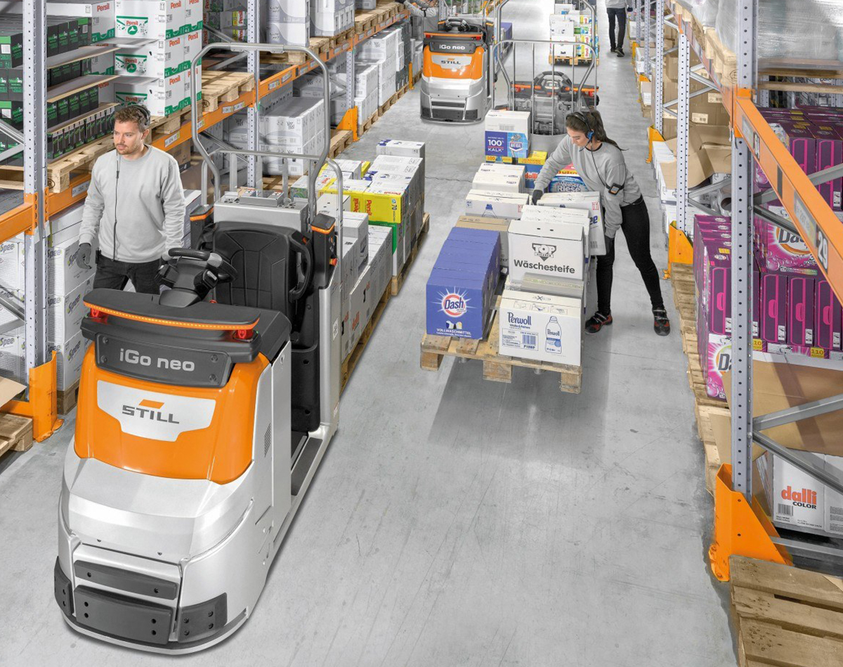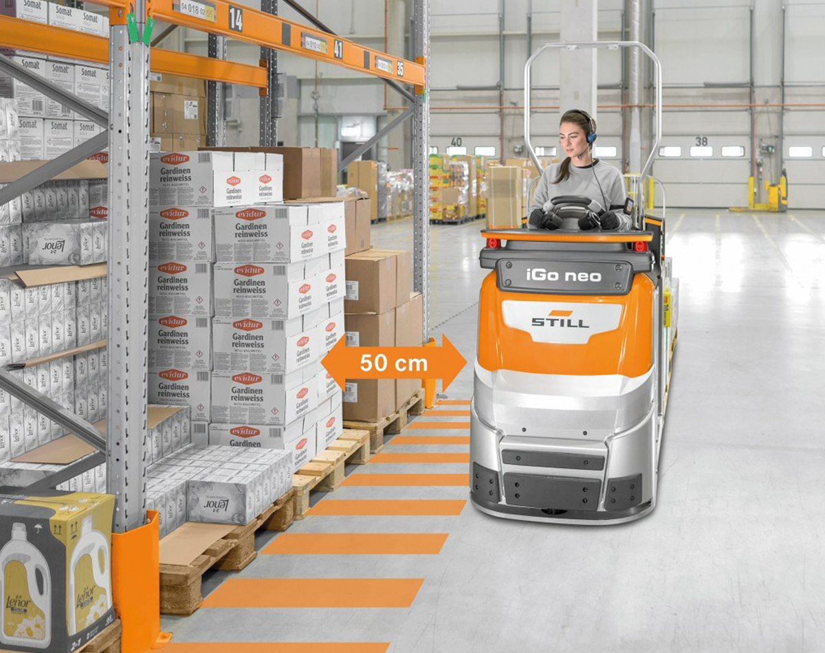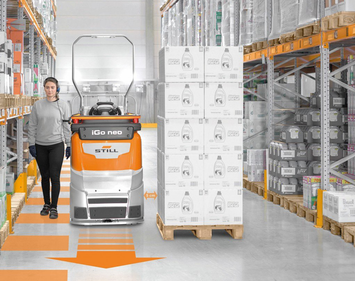 Non appena il percorso è di nuovo libero, OPX iGo neo si riattiva autonomamente. Per motivi di sicurezza, gli incroci vengono attraversati autonomamente solo dopo l’autorizzazione dell’operatore. L’operatore può tornare a comandare il carrello elevatore in modalità manuale in qualsiasi momento: una spia LED indica la modalità selezionata. L’OPX iGo neo aumenta notevolmente le performance di picking e riduce gli errori di commissionamento: non solo l’unità di assistenza autonoma prende il controllo della guida e dello sterzo, permettendo all’operatore di concentrarsi completamente sul suo lavoro, ma vengono anche ridotti i tempi di salita e discesa dal mezzo fino al 75 %, consentendo così di risparmiare tempo e fatica e di ridurre le distanze da coprire a piedi con i carichi.