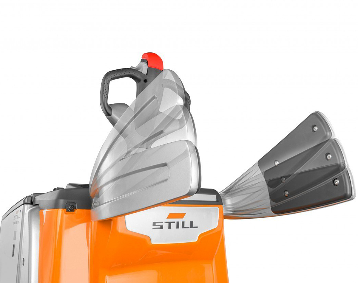 Le protezioni laterali regolabili in altezza garantiscono una guida sicura fino a 10 km/h. STILL Dynamic Drive Control regola dinamicamente la velocità di guida in base alle condizioni attuali e garantisce una marcia ottimale e affidabile in tutte le situazioni. Inoltre, l’EXD-SF può essere manovrato con una sola mano e offre prestazioni ottimali grazie alle ruote di supporto ammortizzate idraulicamente con un’eccellente trazione e un comfort di guida ottimale, anche su rampe e durante le operazioni di carico/scarico dei camion.