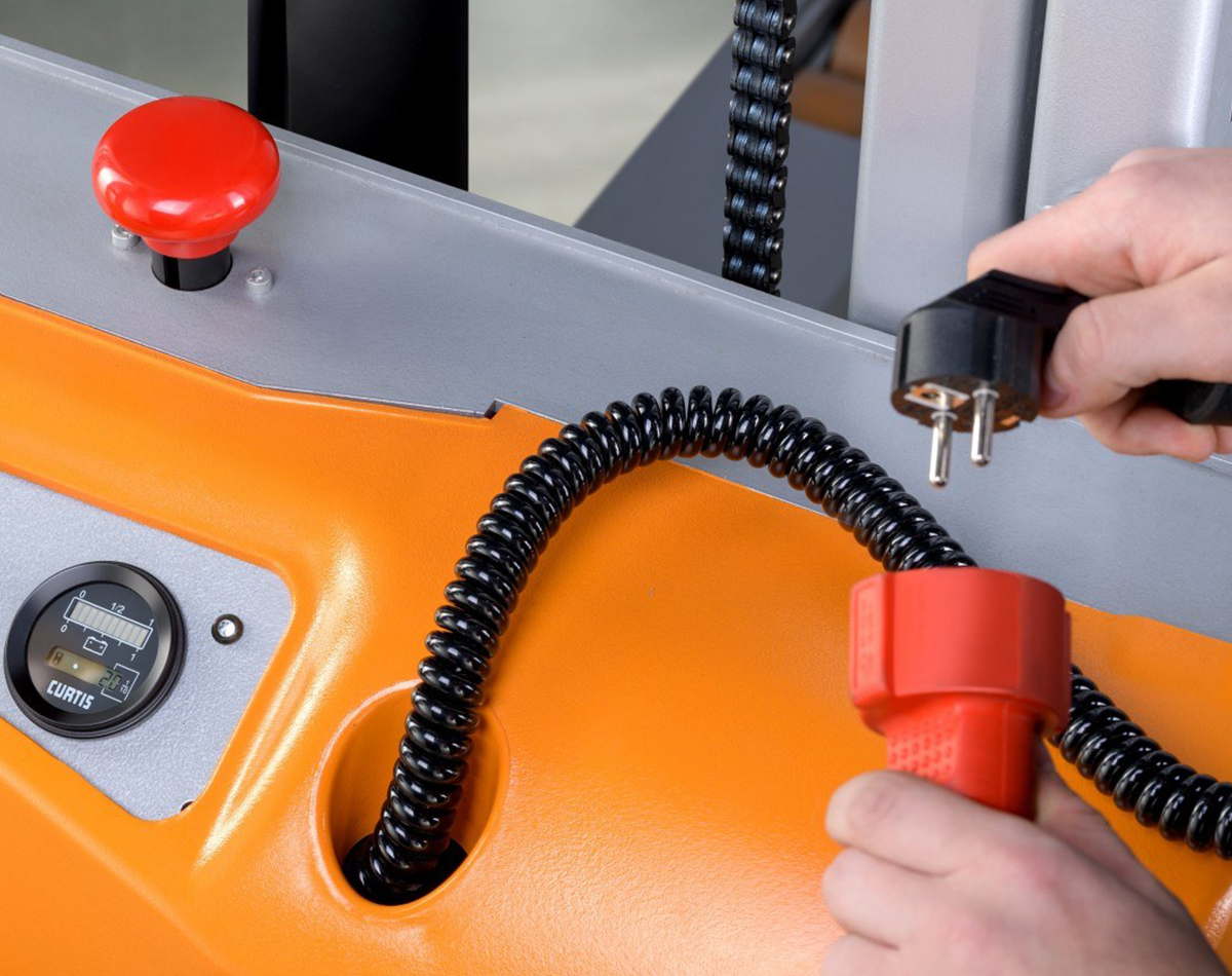 Arrivare in alto: con il modello ECV 10 puoi arrivare ad altezze fino 3.227 mm. In combinazione con una portata massima fino 1.000 kg, il sollevatore ECV 10 offre il supporto ideale per operazioni di stoccaggio occasionali e leggere. Le dimensioni compatte del carrello assicurano il trasporto e lo stoccaggio anche in aree di lavoro con spazi ridotti e corridoi stretti. La ricarica è semplicissima: con il caricabatteria integrato, è possibile ricaricare il sollevatore ECV 10 in qualsiasi presa elettrica. Le due batterie da 12 V garantiscono 125 Ah/h. Il display informativo indica il livello di carica della batteria e le ore di funzionamento, per fornire all’operatore una panoramica sempre aggiornata dell’autonomia rimanente.
