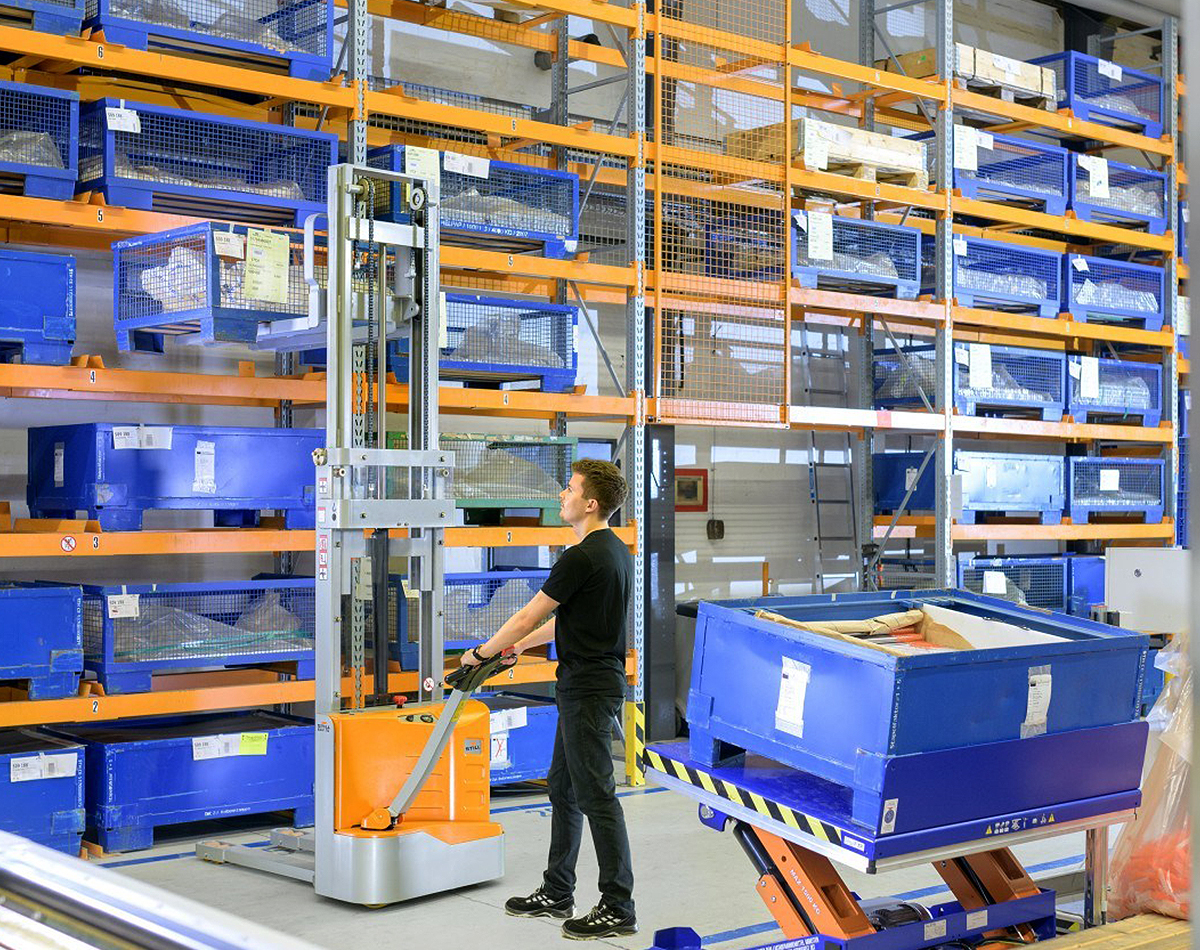 Il sollevatore ECV 10 offre anche performance ottimali in termini di sicurezza. L’ampia visuale tra i profili di sollevamento assicura la vista ottimale delle punte delle forche. Questo stoccatore presenta inoltre una copertura in termoformato che protegge i piedi degli operatori e delle persone nelle vicinanze. Il modello ECV 10 è dotato inoltre della riduzione automatica della velocità in relazione all’altezza di sollevamento, per garantire la massima sicurezza in manovra. Tutte le funzioni possono essere gestite in modo semplice sia da operatori mancini che destrorsi.